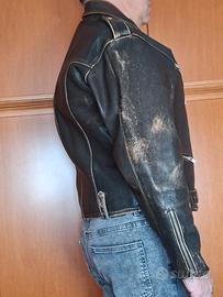 Chiodo vintage marrone vera pelle pesante, no nappa. Ottime condizioni, fodera integra, zip perfette. Taglia XL, il modello veste taglia 50-52.
