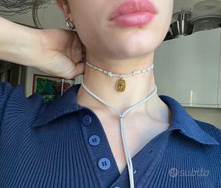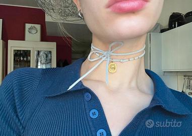 Choker grigio con targhetta