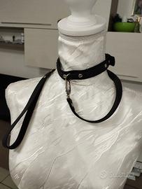choker colore nero in similpelle con guinzaglio sganciabile