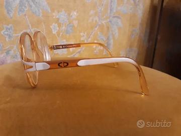 Christian Dior occhiali vintage originali Al momento hanno montate lenti da vista ma si possono mettere anche da sole Colore giallo/arancione con inserti bianchi Made in Germany Qualche segno di usura sulle aste nella parte che viene sull'orecchio, non si nota quando indossati Considerando gli anni, stato generale buono Vero vintage Christian Dior Senza confezione originale