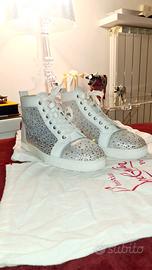 Vendo sneakers alte modello Louis originali Christian Louboutin, impreziosite da cristalli Swarovski originali. Scarpe in condizioni pari al nuovo, usate pochissimo e tenute in modo maniacale. ✔ Modello Louis (iconico) ✔ Taglia 42 ✔ Cristalli Swarovski ✔ Suola rossa Louboutin ✔ Pelle premium 💰 Prezzo: 600€ trattabili in dotazione sacca originale + lacci di ricambio Disponibile per consegna a mano o spedizione. Contattami per altre foto o info.