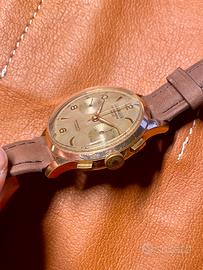 Cronografo vintage placcato oro, Chronograph Suisse. Calibro Landeron 51. Revisionato pochi mesi fa. Funzione cronografo e azzeramento funzionante corretto. Cinturino nuovo in pelle con fibbia cordinata. Possibile scambio a mano su Trento, oppure Milano e provincia di Varese previo accordo e verifica disponibilità.