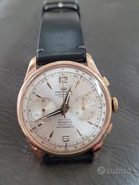 chronograph anni 60 in ottime condizioni cassa laminata oro Fondello acciaio quadrante originale cassa misura 38mm esclusa corona movimento a carica manuale calibro Landeron 248 perfettamente funzionante non perditempo le condizioni dell orologio sono ottime vista l età dell orologio le foto parlano da sé.