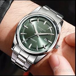 CHRONOS Orologio da Uomo di Lusso - Cinturino in Acciaio Inossidabile, Lancette Luminose, Movimento al Quarzo, Fino a 20M, Verde con Lancette e Segnali, Ideale per