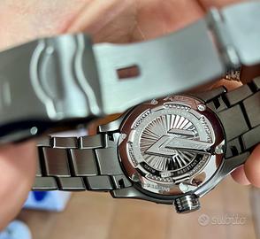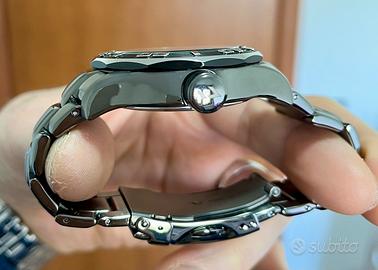 Vendo orologio marca Chronotech modello A530 in acciaio pvd nero, referenza CT.7169M/12M, vetro zaffiro antigraffio e antiriflesso, ghiera girevole unidirezionale con numeri lucidi a rilievo, movimento al quarzo, fondello e corona serrati a vite per una resistenza all’acqua fino a 100 metri, indici e sfere luminescenti al buio, diametro cassa 45mm esclusa corona, altezza cassa 13mm, distanza tra le anse 24mm, lug to lug 52mm. Bracciale in acciaio inox che rastrema a 20mm alla chiusura deployante. Orologio NOS nuovo fondo di magazzino senza un graffio, perfettamente funzionante con batteria nuova appena sostituita. mai usato, messo solo a misura del mio polso il bracciale per provarlo. Possibilità di spedizione in tutta Italia. Non faccio scambi o permute di nessun tipo. Per ulteriori informazioni e foto contattatemi pure. Disponibili tutte le maglie del bracciale, tag originale e certificato di garanzia valevole fino a Novembre 2026. Prodotto originale Chronotech.