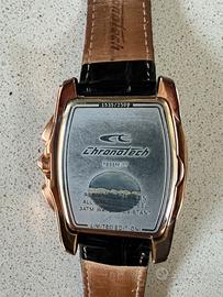 Vendo cronografo Chronotech in edizione limitata, esemplare numero 1535 di soli 2500 prodotti al mondo. Bellissima cassa con finitura oro rosa e quadrante coordinato con numeri romani stilizzati. Cinturino in pelle nera stampata coccodrillo con chiusura originale. Fondello in acciaio con numero di serie inciso, datario a ore 4. Pezzo da collezione per gli amanti del brand. Consegna a mano a Torino (zona Santa Rita).