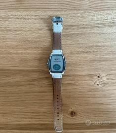 • Cinturino: In pelle di colore bianco, con una texture che ricorda la pelle di coccodrillo, a seconda della versione.