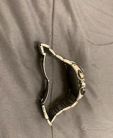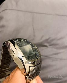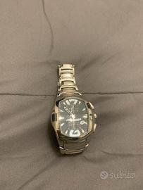 Orologio da collezione Cronotech prisma. Nero e acciaio. Movimento al quarzo ottime condizioni come in foto Quarzo (a batteria) Ore, minuti, secondi Cronografo (stopwatch) Datario (data) Acciaio inox (stainless steel) Forma: Rettangolare/tonneau (bombata) Finitura: Lucida Fondello: acciaio con incisioni (come nella tua foto) Vetro minerale prismatico (tipico di questa serie Chronotech 7895) 3 ATM (30 metri) Resiste a: * schizzi * pioggia Quadrante * Colore: Nero * Indici: applicati luminosi * Contatori cronografo (sub-dial) * Datario a ore circa 4 * Lancette scheletrate stile sportivo Bracciale * Materiale: Acciaio inox * Tipo: maglie metalliche con chiusura deployante NON adatto a nuoto o immersioni (come inciso anche sul retro) Dimensioni * Cassa: 44 mm Pulsanti laterali * 2 pulsanti per il cronografo (start/stop/reset) * 1 corona centrale per regolazione ora/data Non scambio con Rolex Omega TAG Heuer Seiko Citizen Tissot Longines Casio Fossil Guess Swatch Cartier