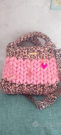 Chunky bag in cotone rosa e leopardato 30x25cm con charms