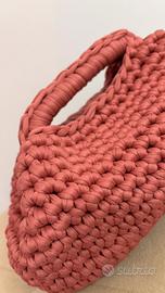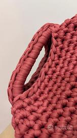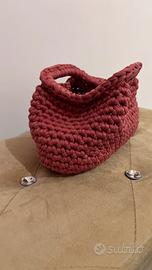 Splendida borsa realizzata interamente a mano all’uncinetto con fettuccia rosa antico di alta qualità. Il design è compatto ma capiente, perfetto per dare un tocco di colore e originalità a un outfit casual e da sera. Perfetta per chi ama lo stile boho-chic e i pezzi unici fatti con amore.