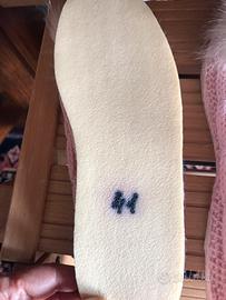 Ciabatta fatta a mano in lana rosa, con soletta in feltro e sntiscivolo, ciuffo in pelliccia, numero 41