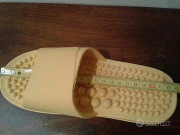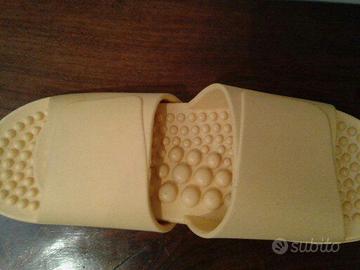 Vendo comoda ciabatta di fabbricazione cinese con fascia e plantare anatomico e massaggiante di colore giallo come da foto. Costruita completamente in materiale plastico, utilizzabile in ogni ambiente ed in ogni situazione. Facilmente lavabile anche in lavatrice.