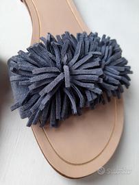Ciabatta donna Bata con fascia velluto color grigio/blu. N.40