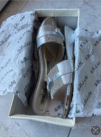 Ciabatta elegante donna Color silver Con strass sulla tomaia Marca Malien N 38 Pari al nuovo