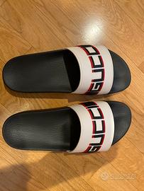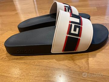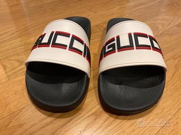 Vendo personali Gucci slides Stripe bianco con scatola, comprate alla Rinascente di Roma e usate solamente in casa ma veramemte poco .. usate e comprate solo per sfizio. Prive di scontrino non piu in possesso ma con la loro scatola originale.