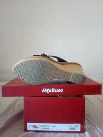 Vendo ciabatta Melluso n.37 (usata ma come nuova) in sughero. Zeppa alta 8 cm calzata anatomica. Pelle scamosciata con bottoni Strass.