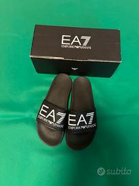 Vendo queste ciabatte Armani causa numero piccolo, usate poche volte con solo un graffio che non si vede tanto. Le ciabatte sono molto comode, taglia 40