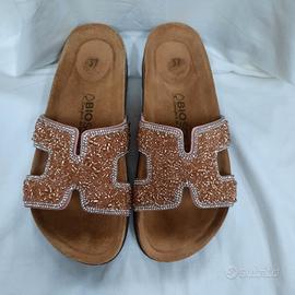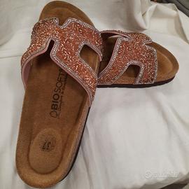 comode ciabatte Biosoft nr 37 in ecopelle rosa con brilli mai usato