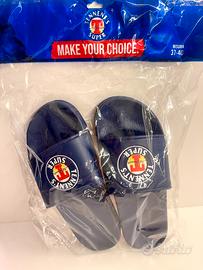 Ciabatte Birra Tennent’s Nuove Originali in morbida gomma di colore Blu con logo grande perfettamente conservate nella loro confezione mai aperta.