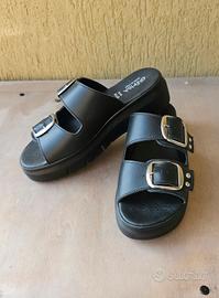 Ciabatte in pelle nera con borchie