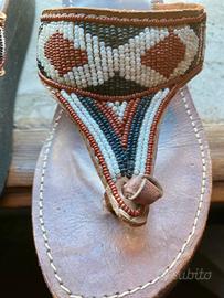 Ciabatte stile etnico in vera pelle marrone con perline. Il numero è il 41 ma calzano un 39-40.
