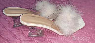 vendo ciabatte bianche con piume ideali anche per sposa mai usate misura 37