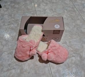 pantofole da camera donna in pelliccia con pon pon nuove con suola antiscivolo Tg M/L (38-39)