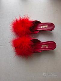 ciabatte in pelle e piume di marabù