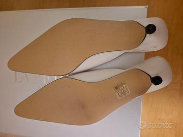 Vendo ciabattine da casa in raso bianco con tacchetti numero 38,vestibilità comoda. Nuove mai usate. Tacchi nuovi.