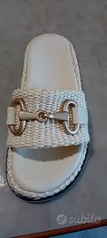 Ciabatte da donna bianche , nr 36 , intrecciate ma foderate per non dare fastidio alle dita ed al collo del piede . Praticamente mai usate . marca Alibi .