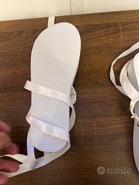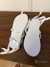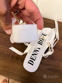 Ciabatte Denny Rose bianche con dettagli dorati e lacci. - Decorazione con borchie. - Laccetti bianchi da legare alla caviglia.