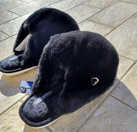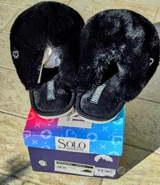 Ciabatte donna con pelo colore nero, taglia 38/39, marca Solo Soprani (NUOVE con cartellino). Prezzo 25euro