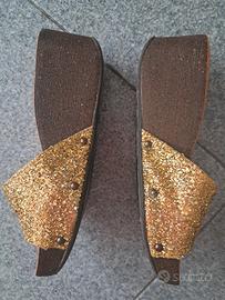 VENDESI A €10 QUESTE CIABATTE IN OTTIMO STATO DA DONNA ELEGANTI NR.37 VERA PELLE MADE IN ITALY CON PAILLETTES DORATE IN RILIEVO, MARCA LAURA BIZZARRI, RITIRO ZONA SUD MILANO FAMAGOSTA AL DOMICILIO O PADERNO DUGNANO, NO SPEDIZIONI E PERDITEMPO!.