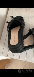 Ciabatte estive eleganti nere. Numero 39. Marca: Camomilla con paillettes nere e fiocco con scritta nice.