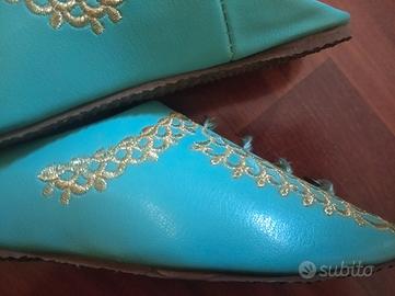nuove,colore Turchese con ricami oro, nuove mai usate, numero 36((cm suola interna 23)