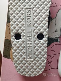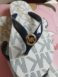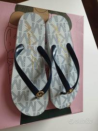 Vendo ciabatte infradito del brand Michael Kors originali e nuove, numero 39. Modello bellissimo, colore blu navy e bianco con logo del marchio in oro.