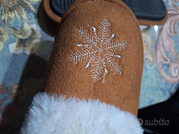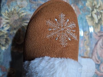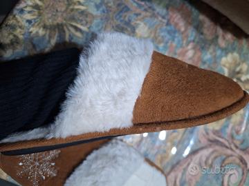 Ciabatte invernali numero 36/37, interno in pelliccia sinterica calda e morbida, esterno in camoscio ecologico, suola in gomma.
