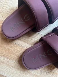 Ciabatte MANGO collezione estate 2024 , mai indossate, bellissimo colore bordeaux, buonissime condizioni generali, è presente una piega su una banda dovuta alla conservazione sotto ad altre scarpe, come visibile in foto, addosso non si nota particolarmente