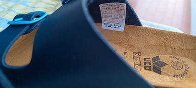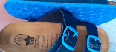 Ciabatte estive unisex completamente nuove, mai indossate. Tomaia in materiale sintetico ma di alta qualità. Interni in tessuto, chiusura con fibbia regolabile, suola flessibile in gomma, antiscivolo, plantare anatomico Bioline, ammortizzante, altamente flessibile in lattice di sughero supporta e alleggerisce il piede.