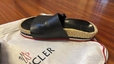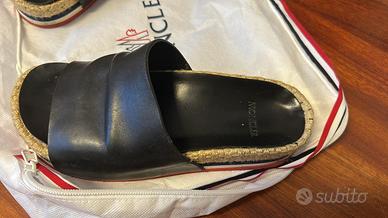 Ciabatte pelle nera con suola in corda colorata Colori classici moncler Taglia 36