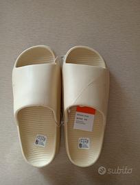 Ciabatte beige Nike, design minimal e pulito. Presentano swoosh inciso sulla fascia e suola leggera e comoda. Taglia 40 . Condizioni perfette,per uso quotidiano, casa o estate. Modello semplice e versatile, facile da abbinare con qualsiasi outfit. Spedizione veloce🚚 Disponibile per domande o foto aggiuntive.