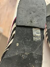 ottime condizioni sabot in pelle nero bianco e fuxia Calzata normale