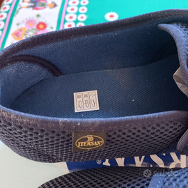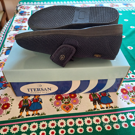 Le ciabatte Itersan in tesuto/lana di colore blu sono ortopedico/sanitarie in quanto presentano un plantare estraibile. Sono ciabatte molto comode, sono chiuse, in lana, molto calde, morbide, con uno strappo in velcro nella parte superiore per consentire una maggiore adattabilità.