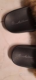 pantofoline donna con pelliccia peluche pelo marrone voluminosa colorata morbide e antishock moda glamour.