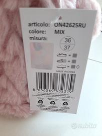 Pantofole/ ciabatta a forma di stivaletto colore rosa chiaro con pelo interno colore grigio chiaro - numero 36/37 .