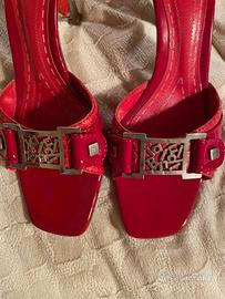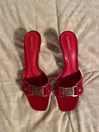 Ciabatte Baldinini rosse in pelle con suona in vero cuoio e inserti in metallo.