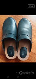 Vendo per inutilizzo zoccoli in vera pelle e legno con suola gommata.