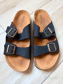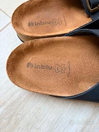 . Numero 45. . Con doppia fascia. . Fibbie regolabili. . Plantare imbottito in vera pelle. . Suola interna sagomata in sughero. . Logo Inblu impresso sulla soletta. . Nuove, mai utilizzate.