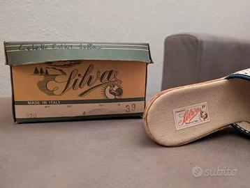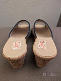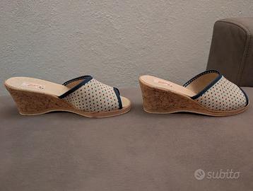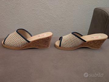 Ciabatte Silva, Beige Fantasia, Stoffa e Sughero Made in Italy, modello vintage anni 80