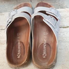 Causa inutilizzo vendo comode ciabatte Superga (USATE) di colore grigio chiaro, doppie fibbie regolabili e plantare anatomico